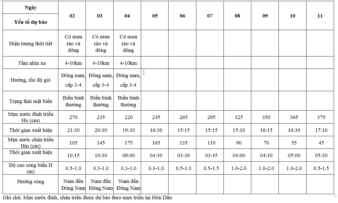 BẢN TIN DỰ BÁO HẢI VĂN 10 NGÀY VÙNG BIỂN TỈNH HƯNG YÊN (từ 02/07/2025 đến 11/07/2025)