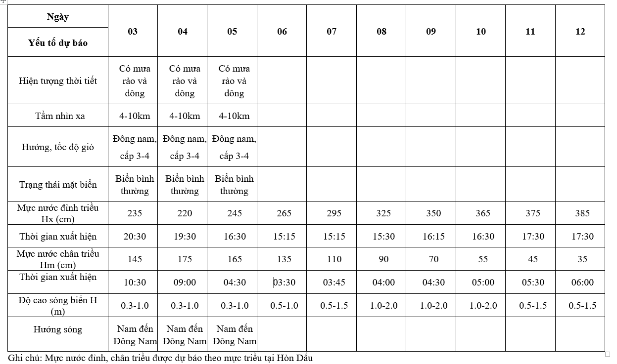 BẢN TIN DỰ BÁO HẢI VĂN 10 NGÀY VÙNG BIỂN TỈNH HƯNG YÊN (từ 03/07/2025 đến 12/07/2025)