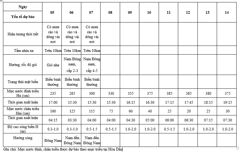 BẢN TIN DỰ BÁO HẢI VĂN 10 NGÀY VÙNG BIỂN TỈNH HƯNG YÊN (từ 05/07/2025 đến 14/07/2025)