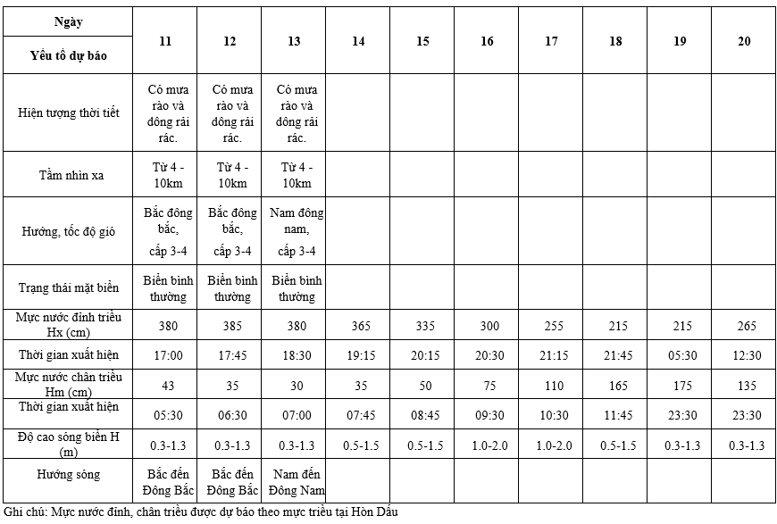 BẢN TIN DỰ BÁO HẢI VĂN 10 NGÀY VÙNG BIỂN TỈNH HƯNG YÊN (từ 11/7/2025 đến 20/7/2025)