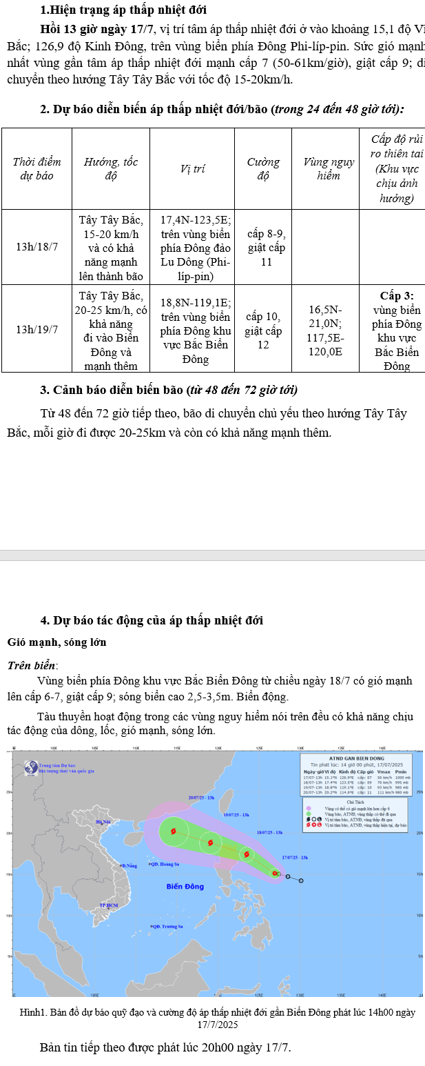 TIN ÁP THẤP NHIỆT ĐỚI GẦN BIỂN ĐÔNG hồi 14h ngày 17/07/2025 (chuyển tiếp TW)