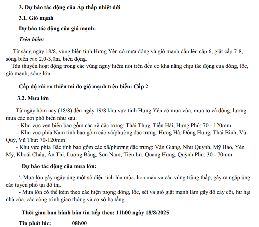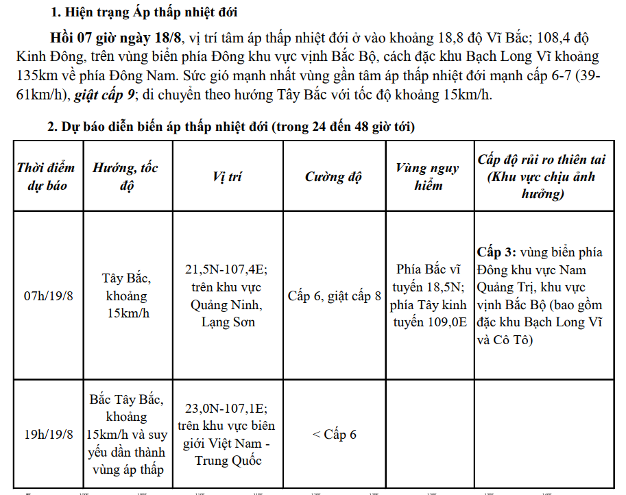 TIN ÁP THẤP NHIỆT ĐỚI KHẨN CẤP (HỒI 07H NGÀY 18/8/2025)