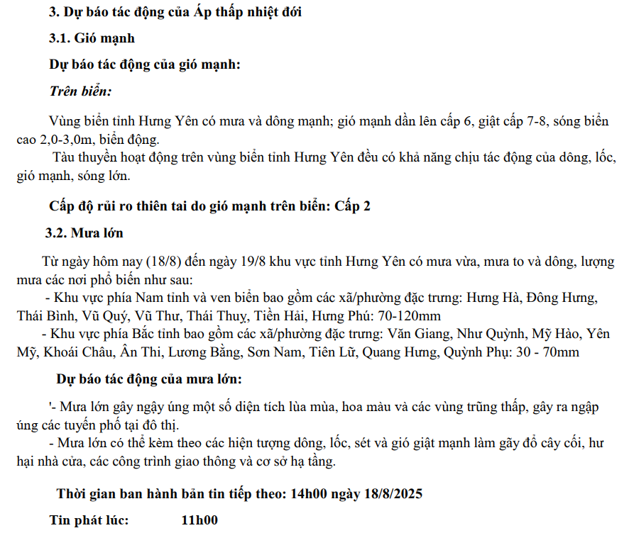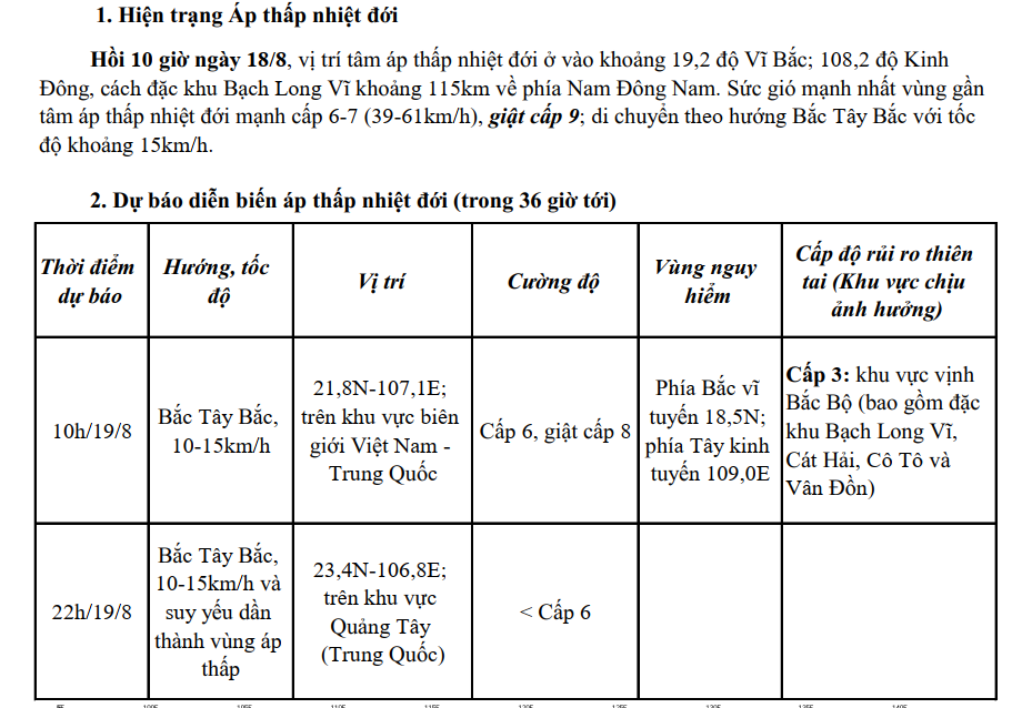 TIN ÁP THẤP NHIỆT ĐỚI KHẨN CẤP (HỒI 10H NGÀY 18/8/2025)