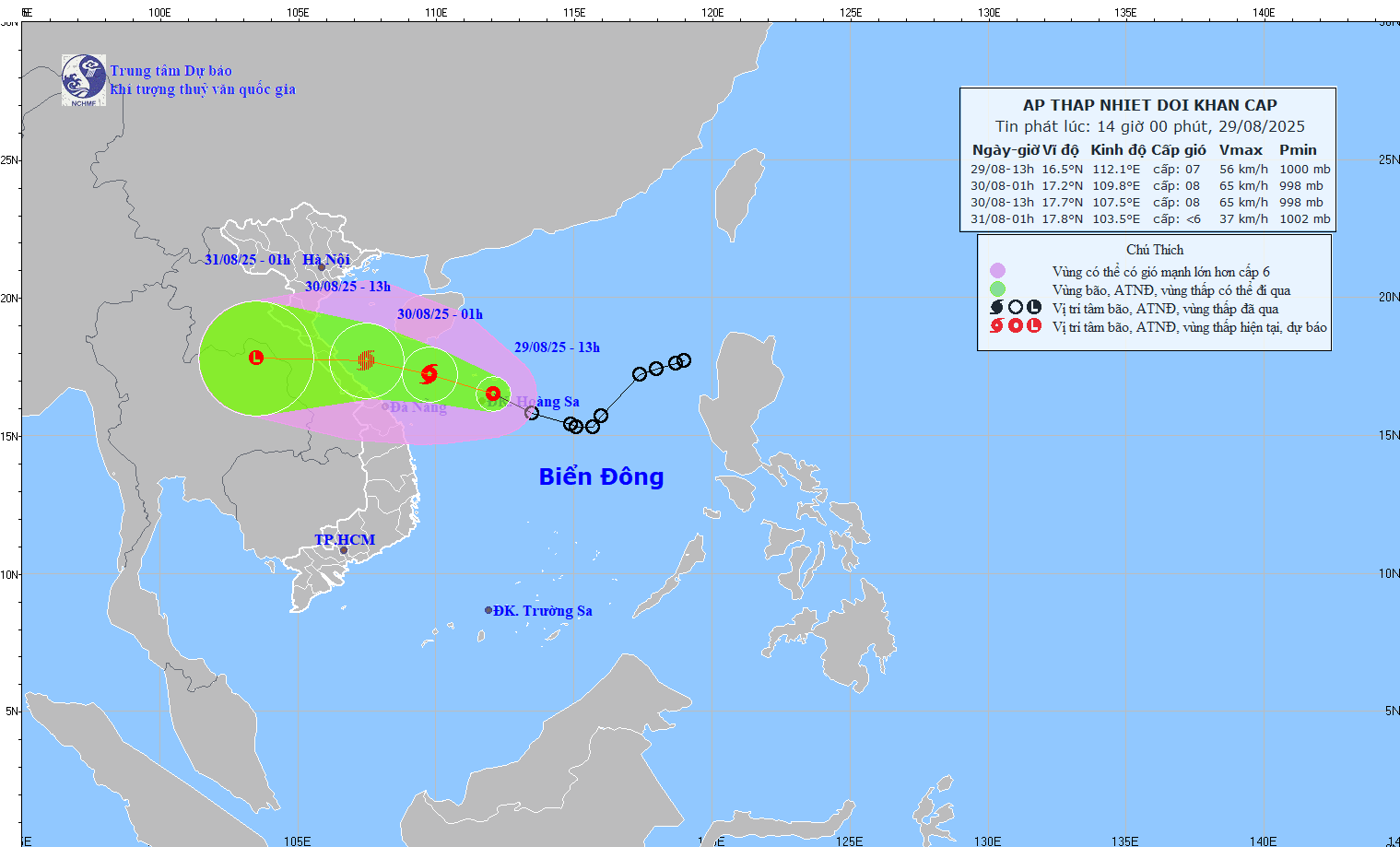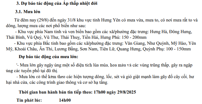 TIN ÁP THẤP NHIỆT ĐỚI KHẨN CẤP HỒI 13H00 NGÀY 29/8/2025