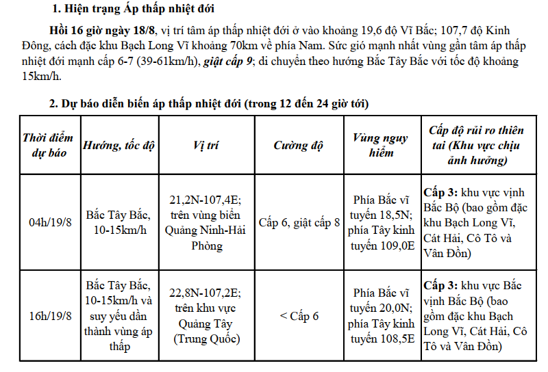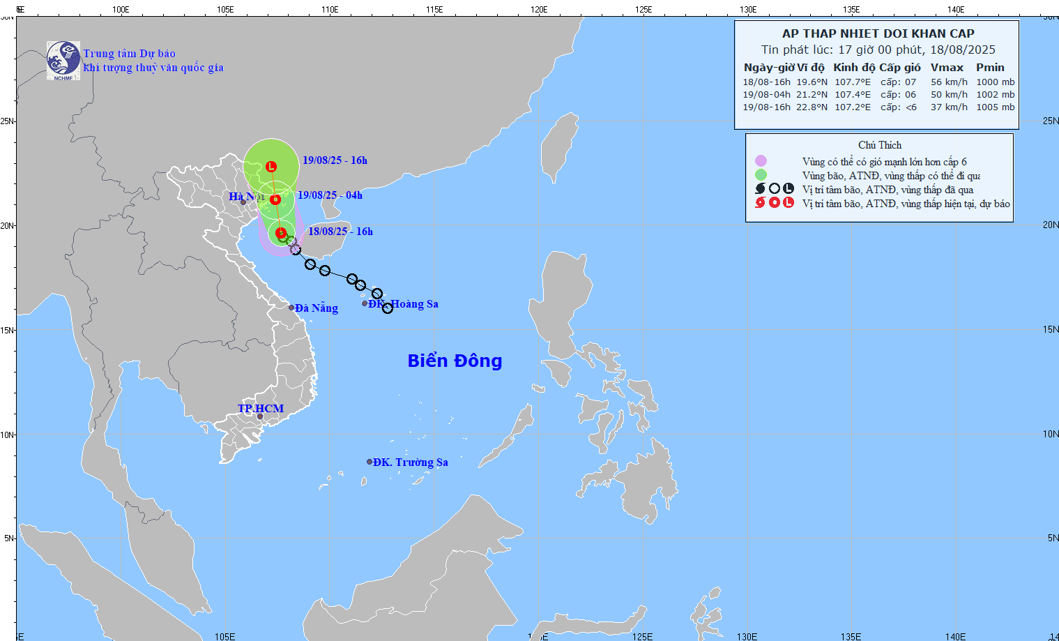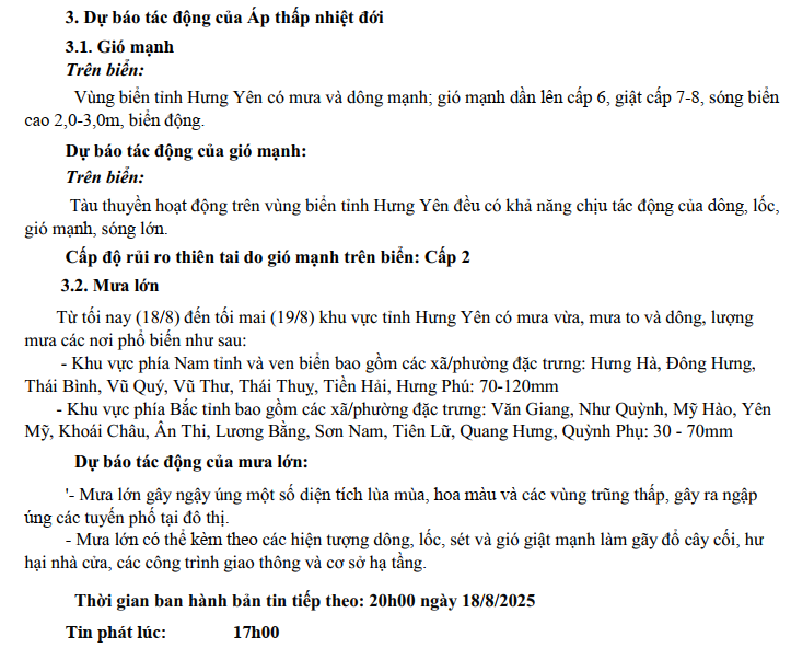 TIN ÁP THẤP NHIỆT ĐỚI KHẨN CẤP (HỒI 17H NGÀY 18/8/2025)
