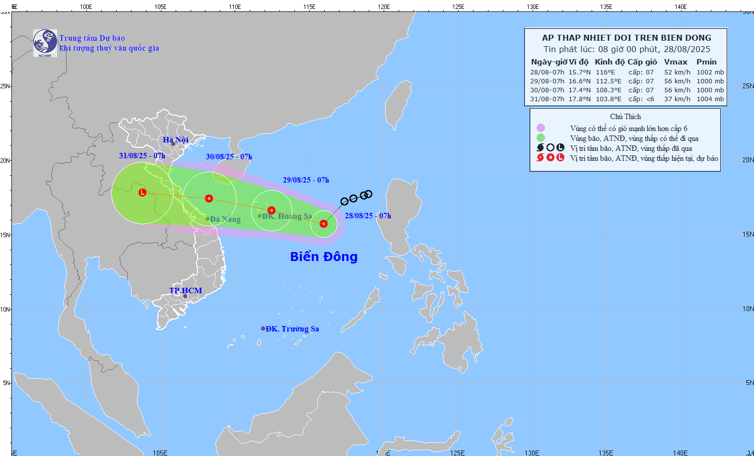 TIN ÁP THẤP NHIỆT ĐỚI TRÊN BIỂN ĐÔNG ( Hồi 07h00 ngày 28/8/2025)