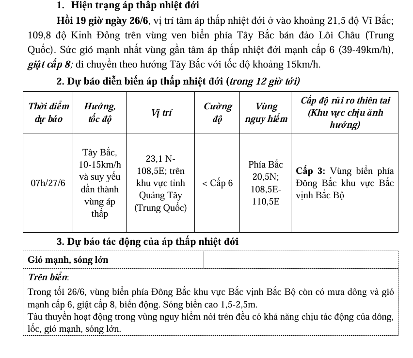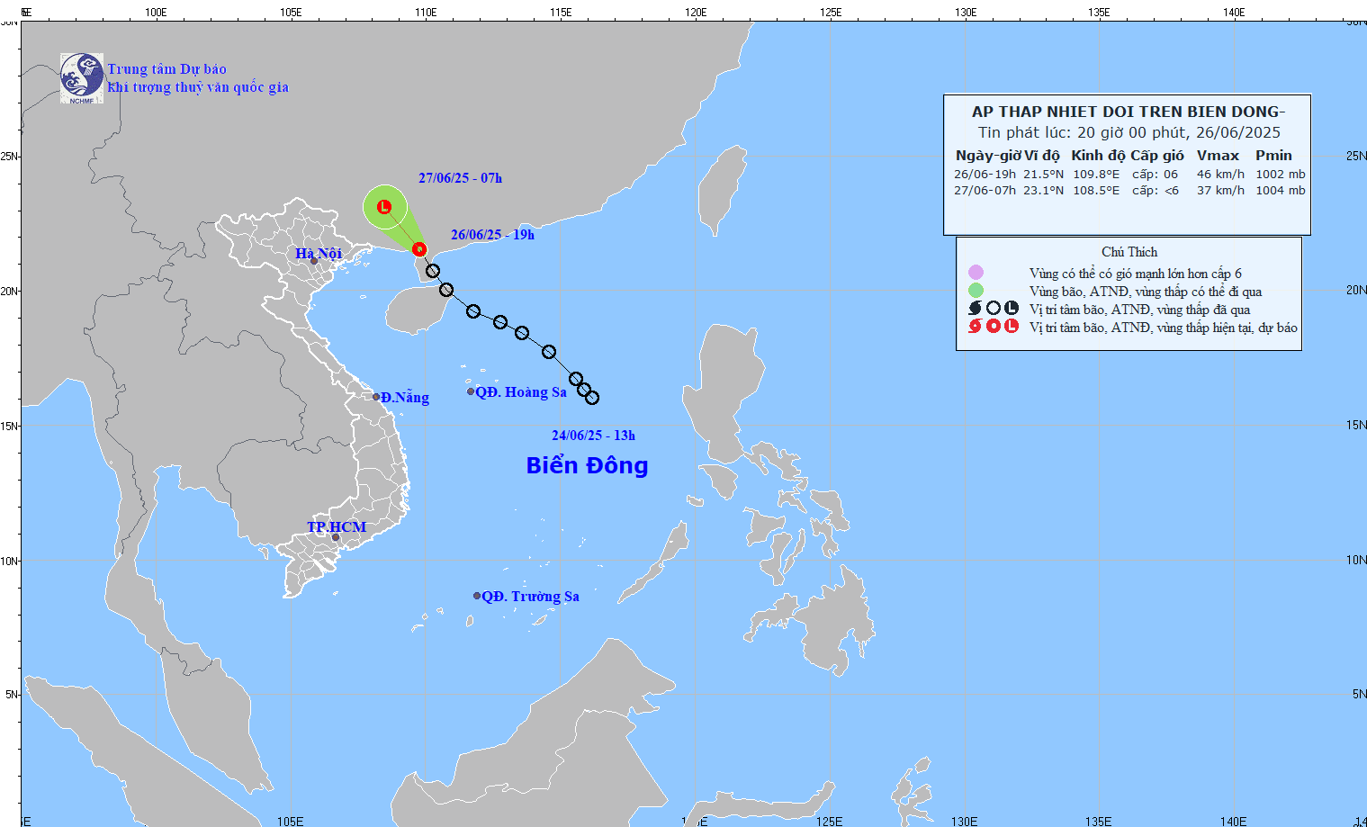 TIN ÁP THẤP NHIỆT ĐỚI TRÊN BIỂN ĐÔNG HỒI 19h00 NGÀY 26/6/2025