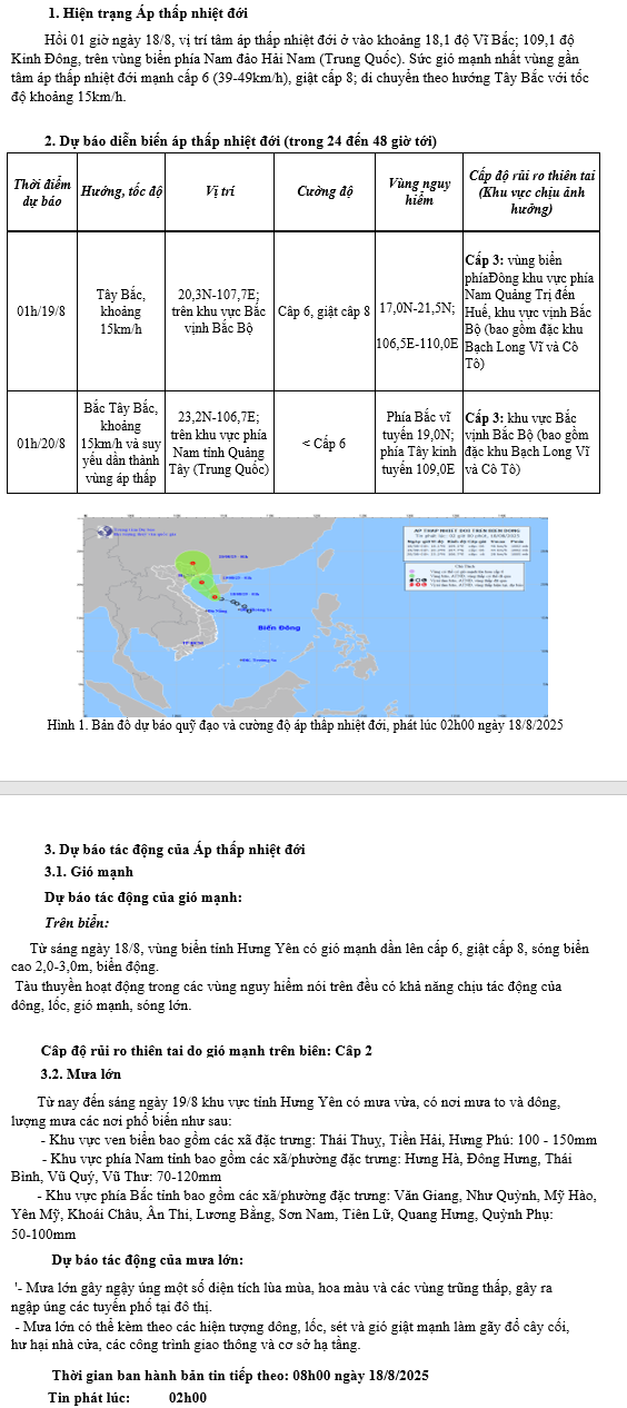 TIN ÁP THẤP NHIỆT ĐỚI TRÊN BIỂN ĐÔNG (PHÁT LÚC 02H NGÀY 18/8/2025)