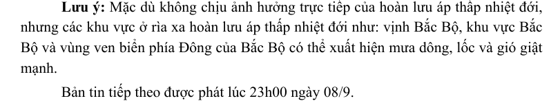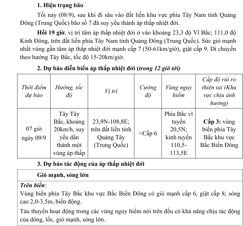 TIN ÁP THẤP NHIỆT ĐỚI TRÊN ĐẤT LIỀN (Suy yếu từ cơn bão số 7) HỒI 19h00 NGÀY 08/09/2025)