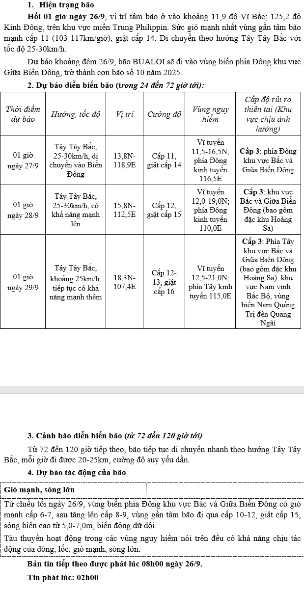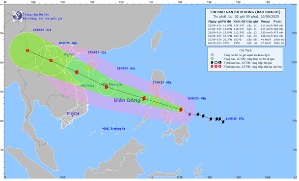 TIN BÃO GẦN BIỂN ĐÔNG - CƠN BÃO BUALOI (HỒI 01h NGÀY 26/9/2025)