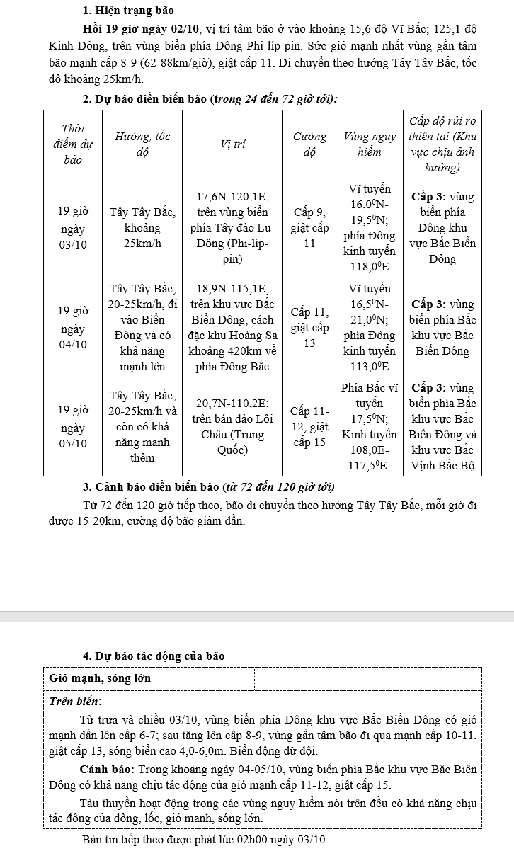 TIN BÃO GẦN BIỂN ĐÔNG (CƠN BÃO MATMO_ Hồi 19h ngày 02/10/2025)