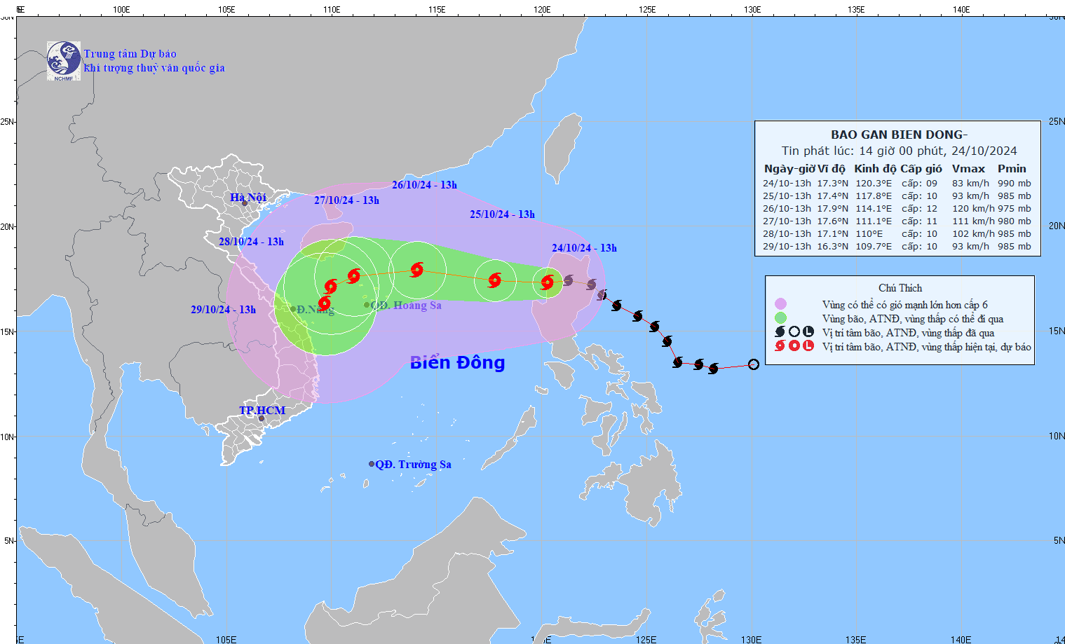 2. Dự báo diễn biến bão (24 đến 72 giờ tới):