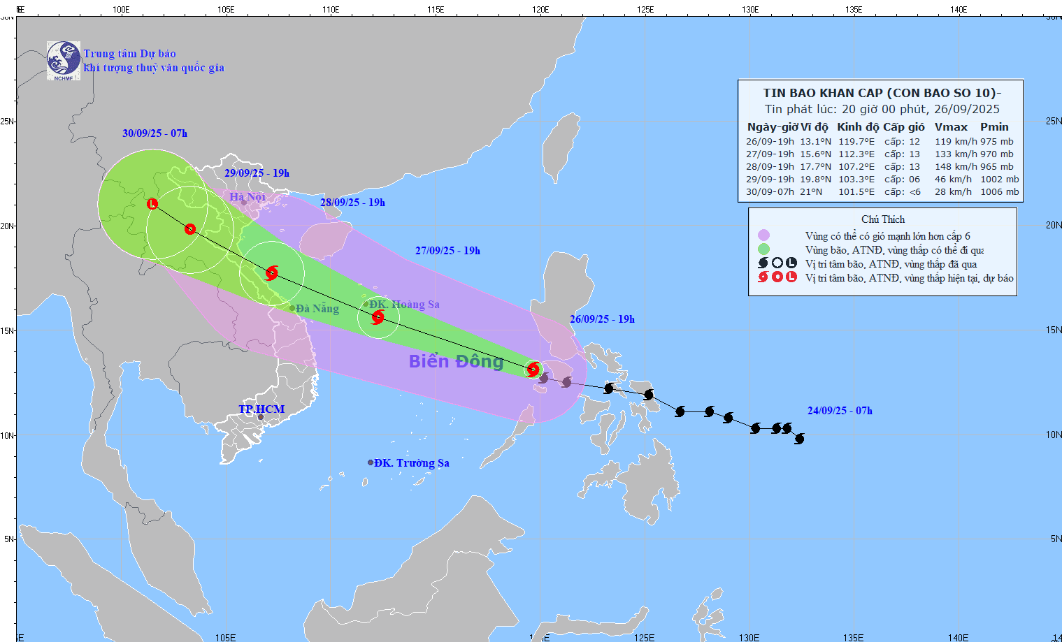 Tối nay (26/9), bão BUALOI đã đi vào vùng biển phía Đông của khu vực Giữa Biển Đông và trở thành cơn bão số 10 trong năm 2025.