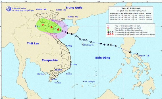 Hồi 04 giờ ngày 02/8, vị trí tâm bão ở khoảng 19,4 độ Vĩ Bắc; 106,7 độ Kinh Đông, cách bờ biển các tỉnh Thái Bình-Nghệ An khoảng 120km về phía Đông Nam. Sức gió mạnh nhất vùng gần tâm bão mạnh cấp 8 (60-75km/giờ), giật cấp 10. Bán kính gió mạnh cấp 6, giật cấp 8 trở lên khoảng 130km tính từ tâm bão.