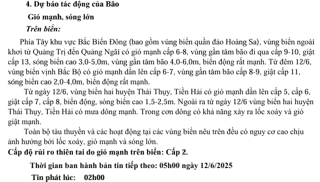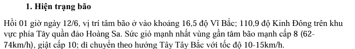 TIN BÃO TRÊN BIỂN ĐÔNG (CƠN BÃO SỖ 01) HỒI 01h00 NGÀY 12/6/2025
