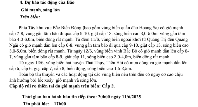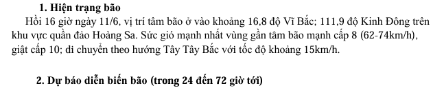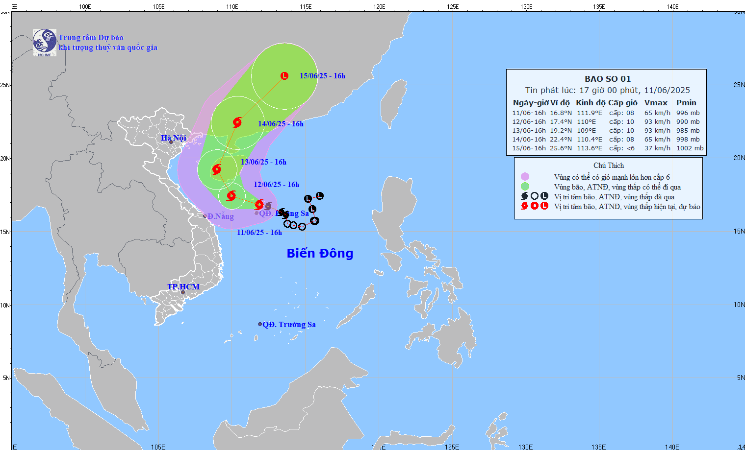 TIN BÃO TRÊN BIỂN ĐÔNG (CƠN BÃO SỖ 01) HỒI 16h00 NGÀY 11/6/2025