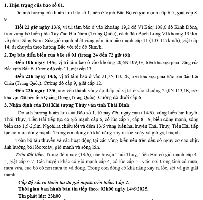 TIN BÃO TRÊN BIỂN ĐÔNG (CƠN BÃO SỖ 01) HỒI 22h00 NGÀY 12/6/2025