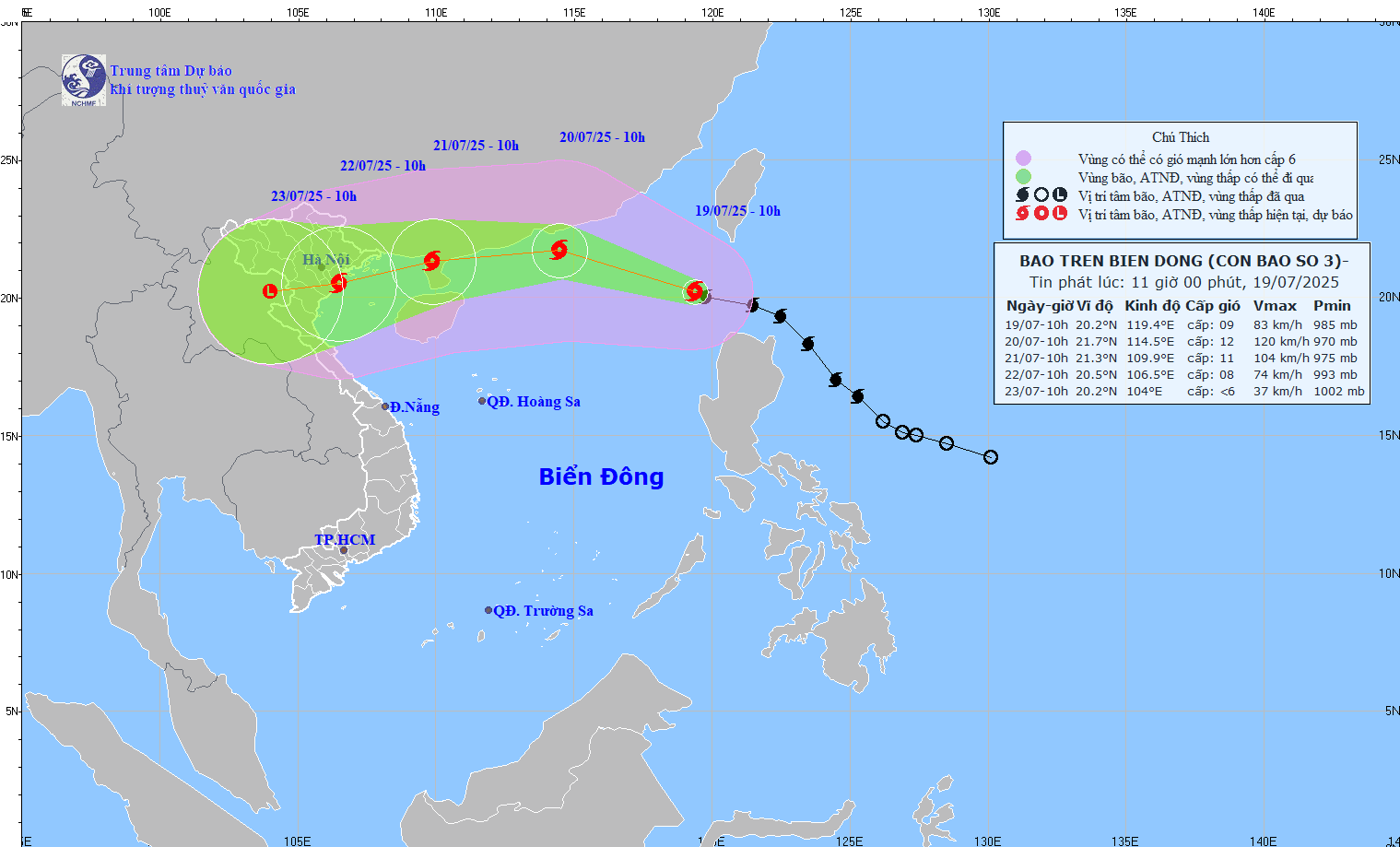 TIN BÃO TRÊN BIỂN ĐÔNG (CƠN BÃO SỐ 03) - hồi 10h00 ngày 19/7/2025)