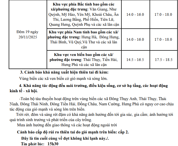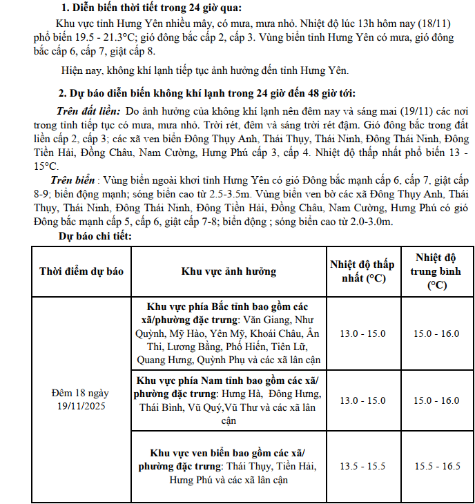 • TIN KHÔNG KHÍ LẠNH TĂNG CƯỜNG KHU VỰC TỈNH HƯNG YÊN (15h30 NGÀY 16/11/2025)