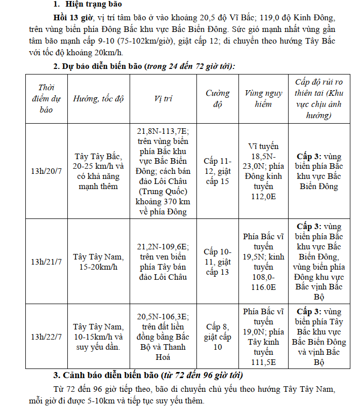 TIN BÃO TRÊN BIỂN ĐÔNG (CƠN BÃO SỐ 03) - hồi 13h00 ngày 19/7/2025)