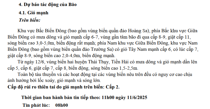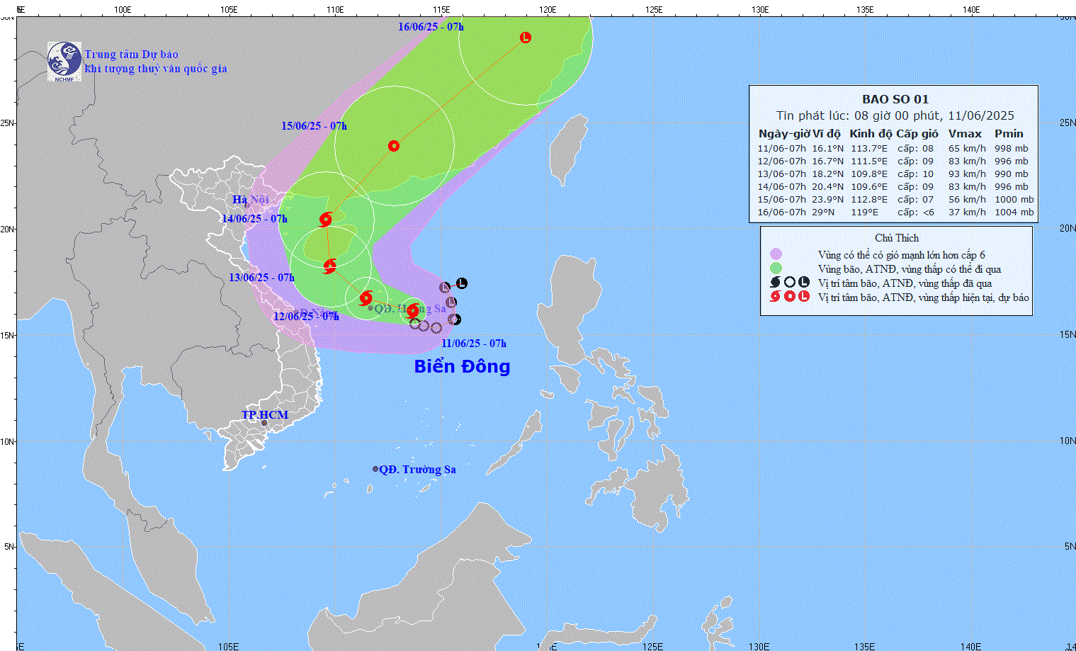 TIN BÃO TRÊN BIỂN ĐÔNG (CƠN BÃO SỖ 1) HỒI 07h00 NGÀY 11/6/2025