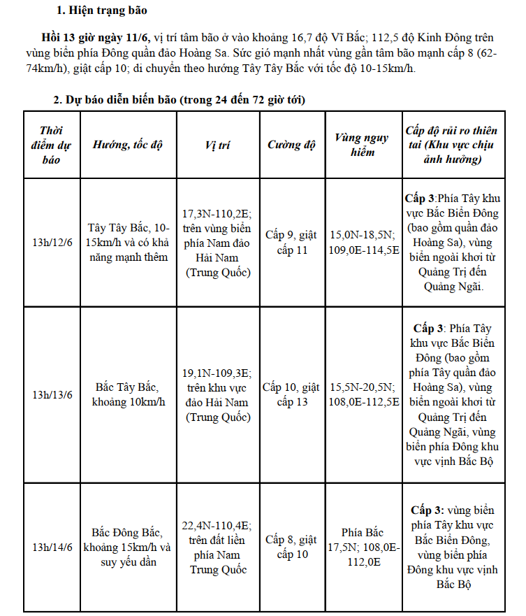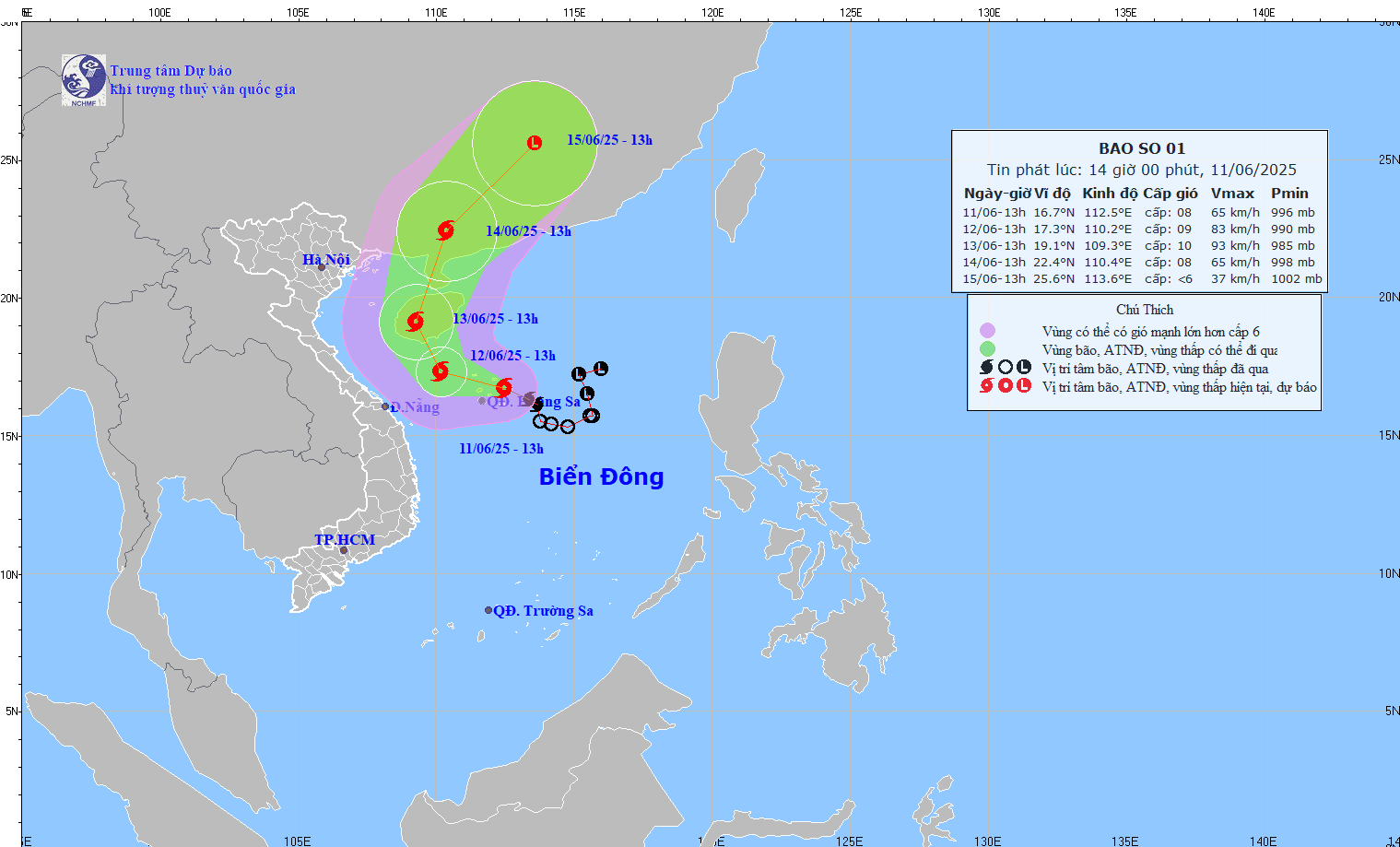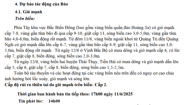TIN BÃO TRÊN BIỂN ĐÔNG (CƠN BÃO SỖ 1) HỒI 14h00 NGÀY 11/6/2025