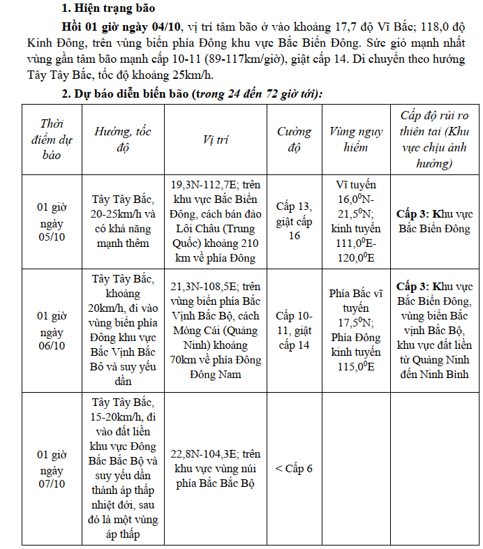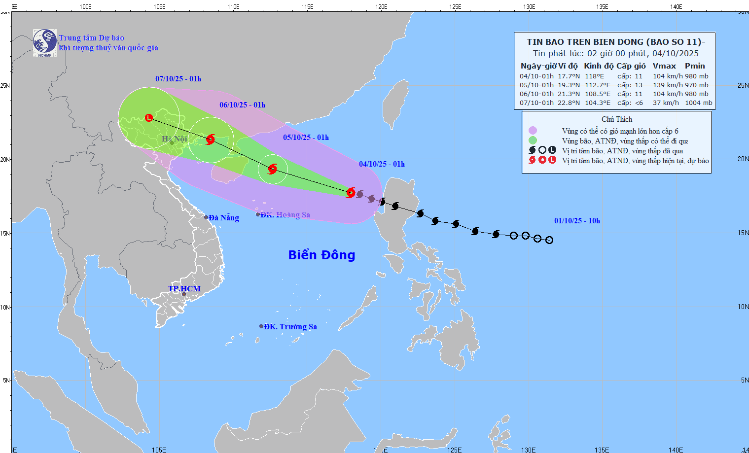TIN BÃO TRÊN BIỂN ĐÔNG (CƠN BÃO SỐ 11_ Hồi 01h ngày 04/10/2025)