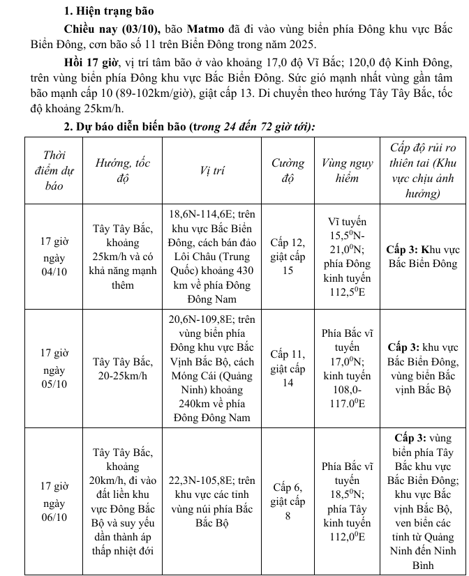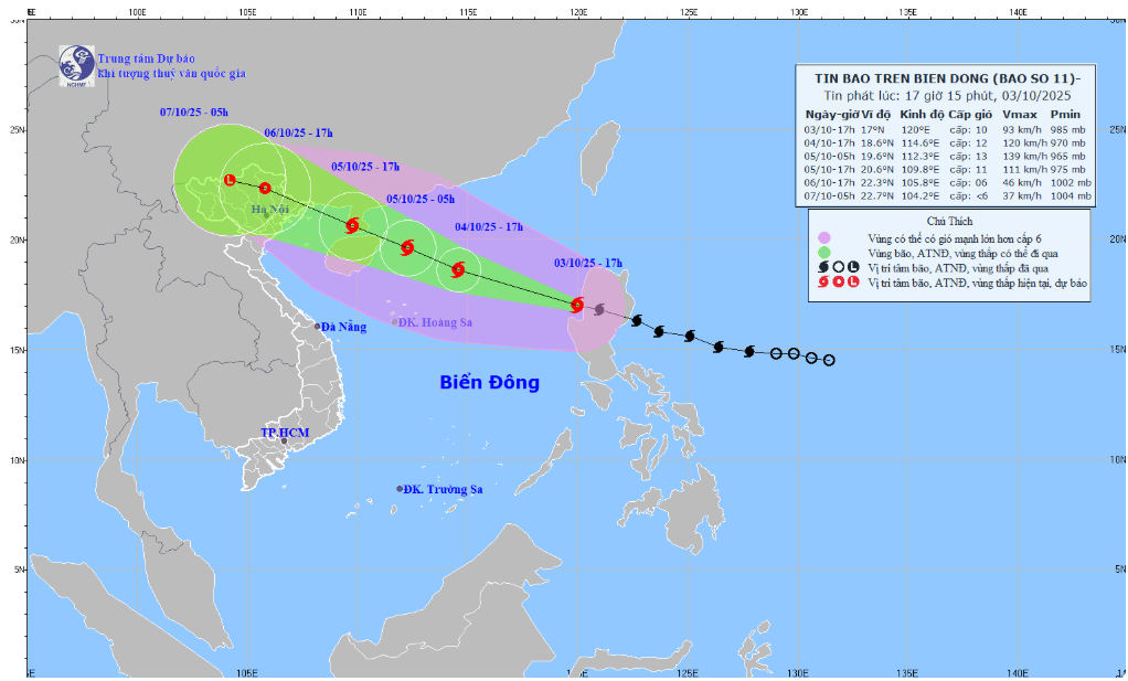 TIN BÃO TRÊN BIỂN ĐÔNG (CƠN BÃO SỐ 11_ Hồi 17h ngày 03/10/2025)