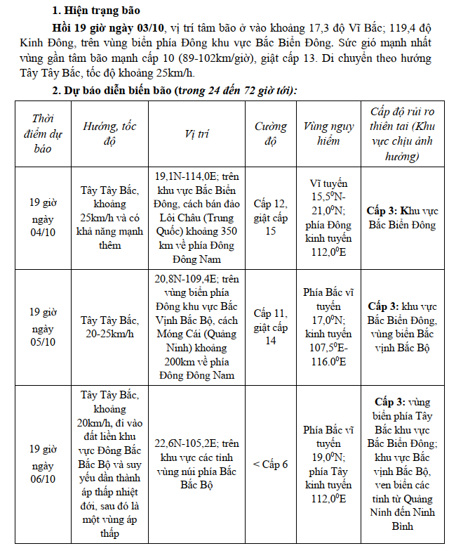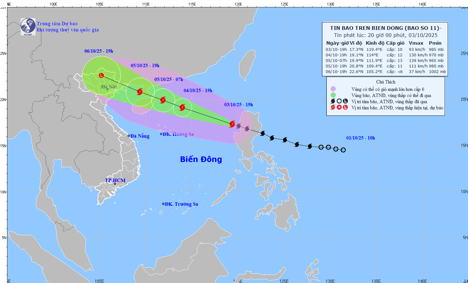 TIN BÃO TRÊN BIỂN ĐÔNG (CƠN BÃO SỐ 11_ Hồi 19h ngày 03/10/2025)