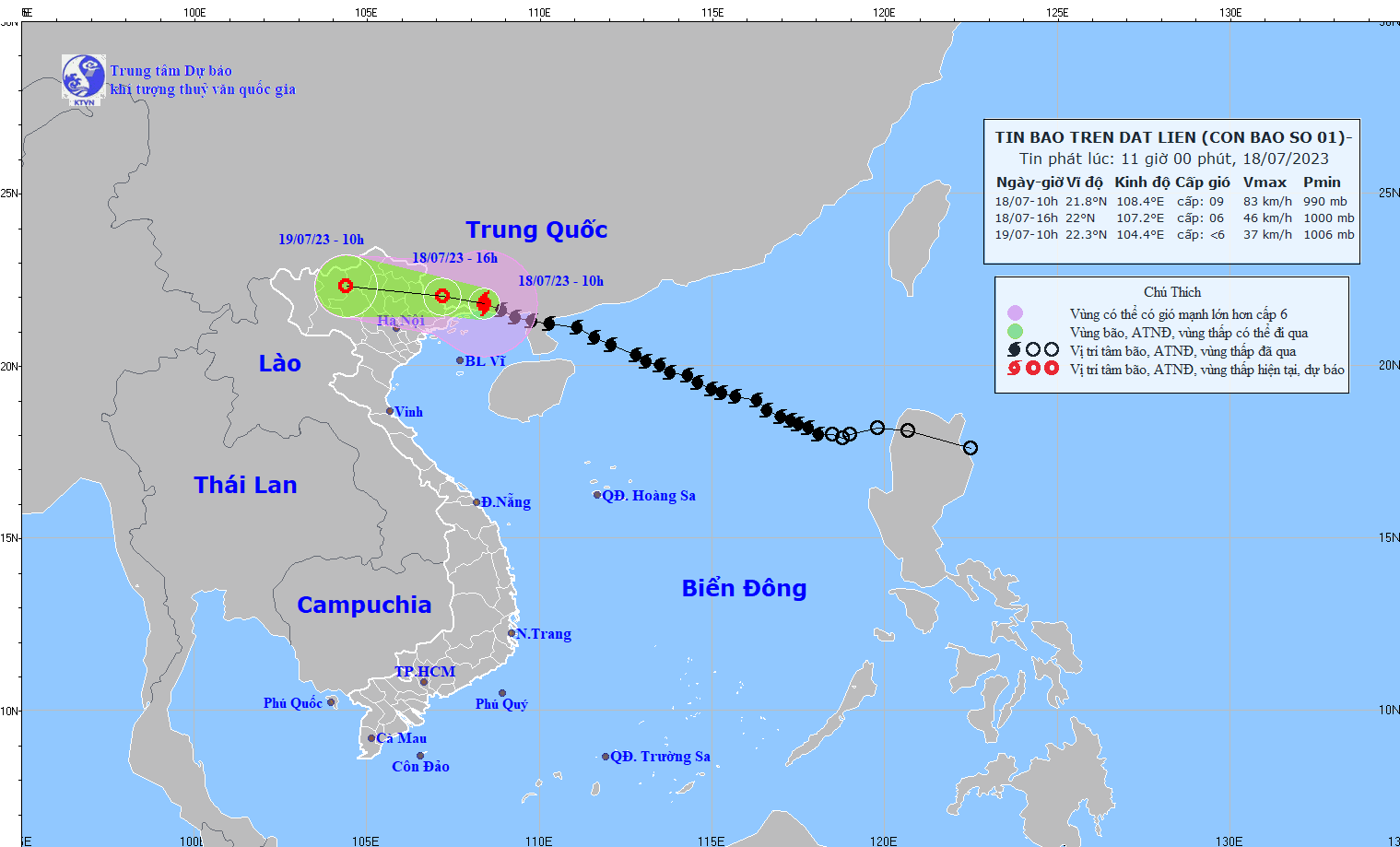 TIN BÃO TRÊN ĐẤT LIỀN - CƠN BÃO SỐ 1 (hồi 10h ngày 18/07/2023)