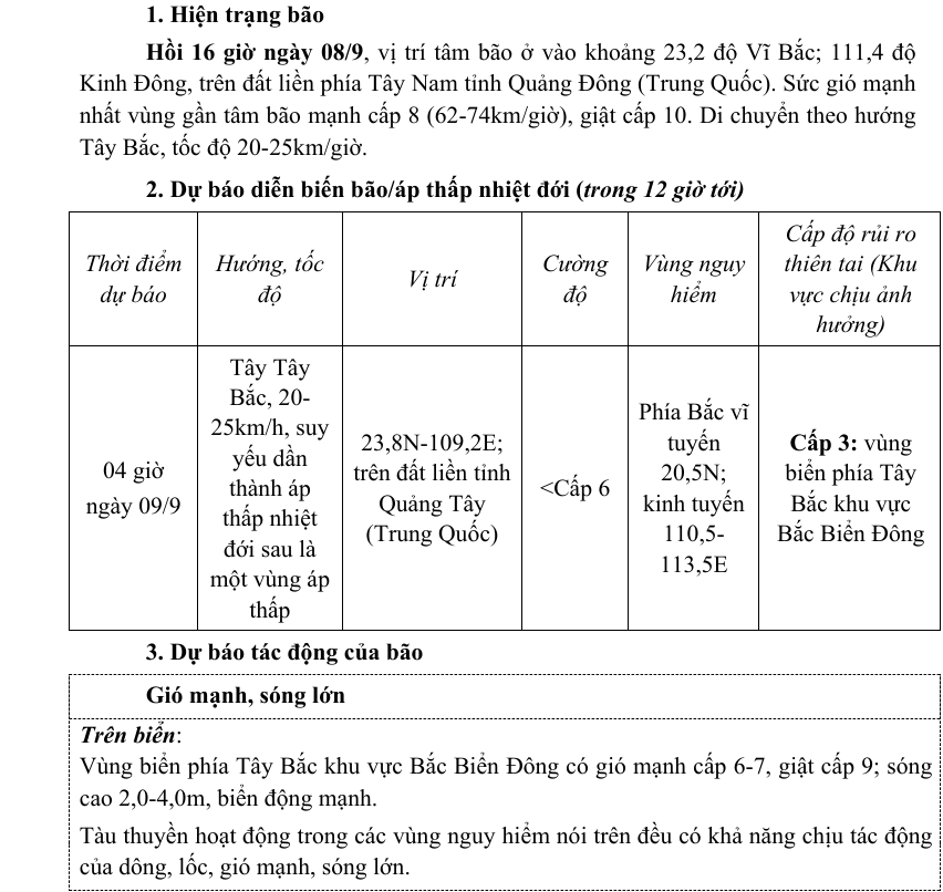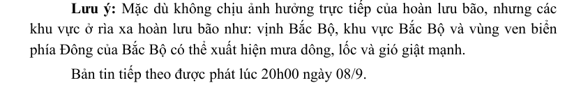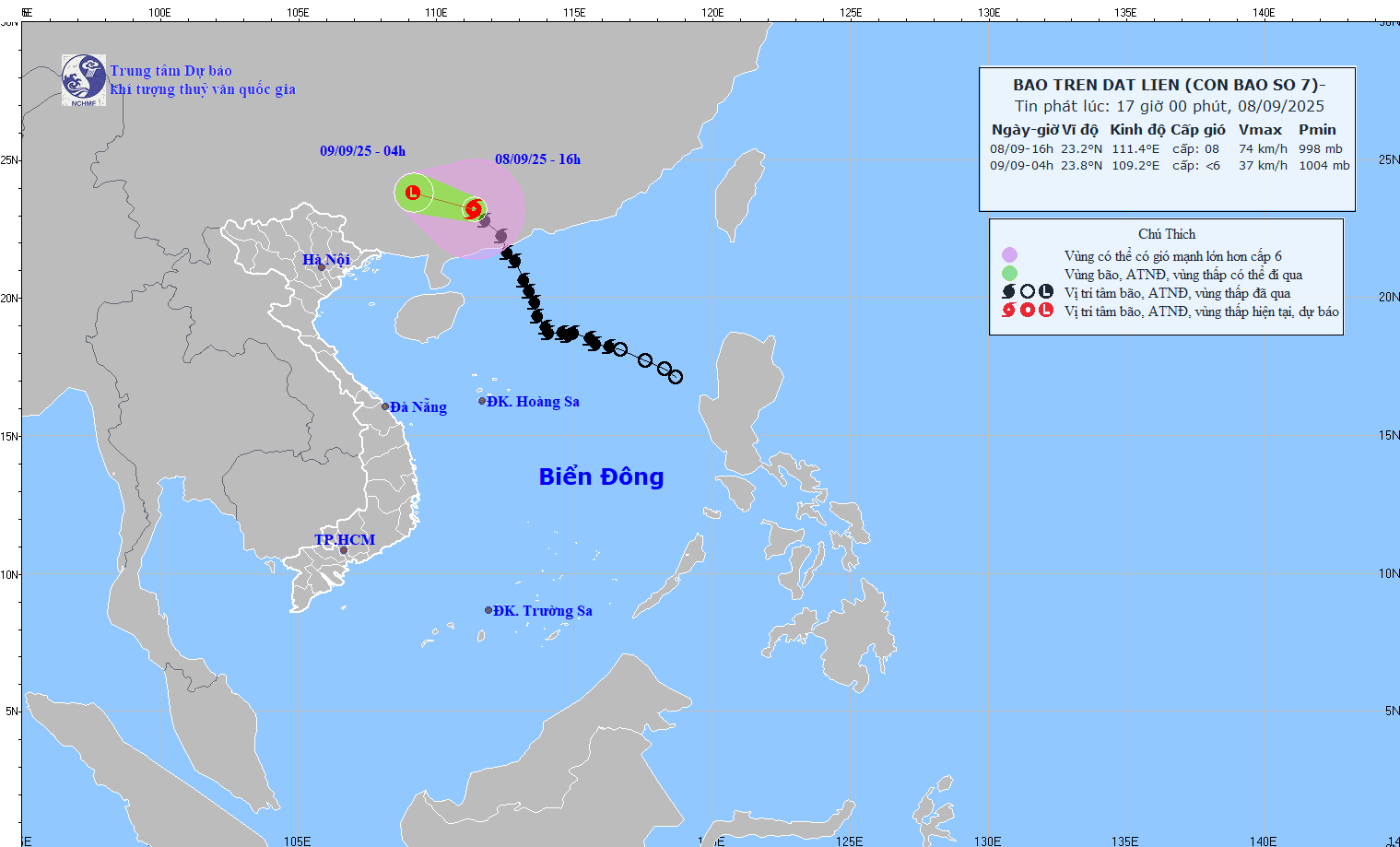 TIN BÃO TRÊN ĐẤT LIỀN (CƠN BÃO SỐ 7- HỒI 16h00 NGÀY 08/09/2025)
