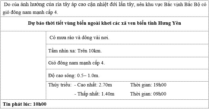 • BẢN TIN DỰ BÁO HẢI VĂN 10 NGÀY VÙNG BIỂN TỈNH HƯNG YÊN (Từ 04/12/2025 đến 13/12/2025)