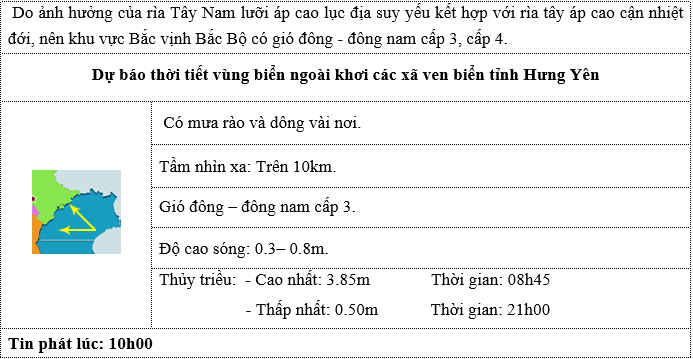 • BẢN TIN DỰ BÁO HẢI VĂN 10 NGÀY VÙNG BIỂN TỈNH HƯNG YÊN (Từ 04/12/2025 đến 13/12/2025)