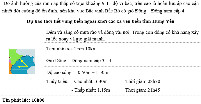 • BẢN TIN DỰ BÁO HẢI VĂN 10 NGÀY VÙNG BIỂN TỈNH HƯNG YÊN (Từ 04/12/2025 đến 13/12/2025)