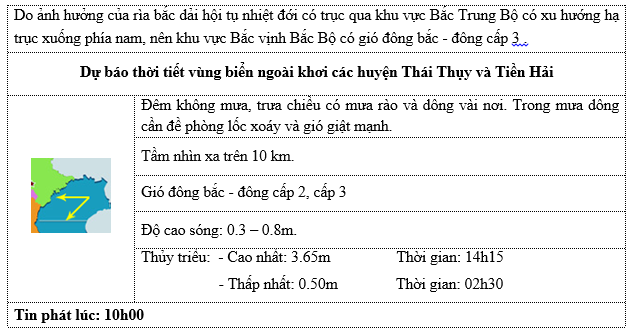 • BẢN TIN DỰ BÁO HẢI VĂN 10 NGÀY VÙNG BIỂN TỈNH HƯNG YÊN (Từ 04/12/2025 đến 13/12/2025)