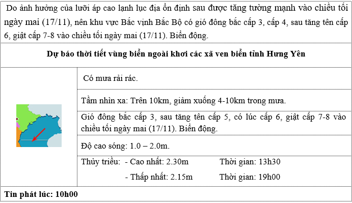 • BẢN TIN DỰ BÁO HẢI VĂN 10 NGÀY VÙNG BIỂN TỈNH HƯNG YÊN (Từ 04/12/2025 đến 13/12/2025)