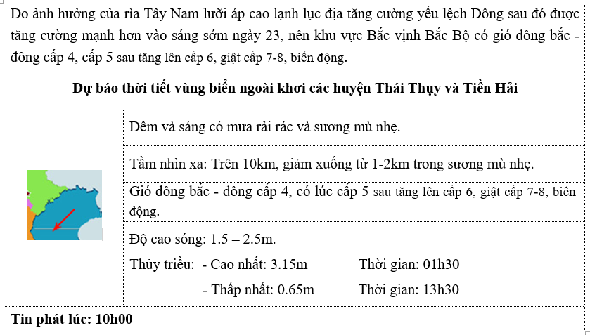 DỰ BÁO THỜI TIẾT BIỂN ĐÊM 22 NGÀY 23/02/2025