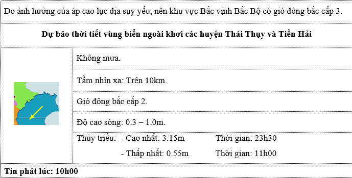 • BẢN TIN DỰ BÁO HẢI VĂN 10 NGÀY VÙNG BIỂN TỈNH HƯNG YÊN (Từ 04/12/2025 đến 13/12/2025)