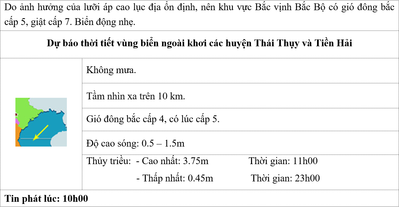 • BẢN TIN DỰ BÁO HẢI VĂN 10 NGÀY VÙNG BIỂN TỈNH HƯNG YÊN (Từ 04/12/2025 đến 13/12/2025)