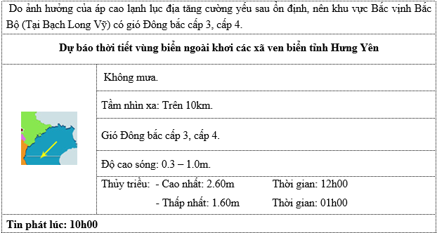 • BẢN TIN DỰ BÁO HẢI VĂN 10 NGÀY VÙNG BIỂN TỈNH HƯNG YÊN (Từ 04/12/2025 đến 13/12/2025)