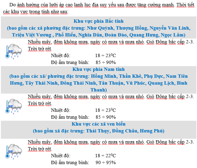 DỰ BÁO THỜI TIẾT KHU VỰC HƯNG YÊN ĐÊM 02 NGÀY 03/12/2025