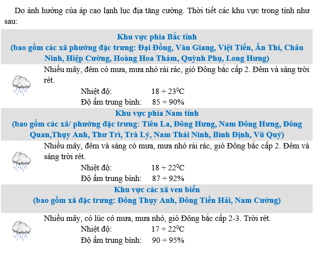 DỰ BÁO THỜI TIẾT KHU VỰC HƯNG YÊN ĐÊM 04 NGÀY 05/12/2025