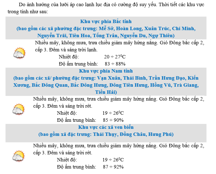• DỰ BÁO THỜI TIẾT KHU VỰC HƯNG YÊN ĐÊM 02 NGÀY 03/12/2025