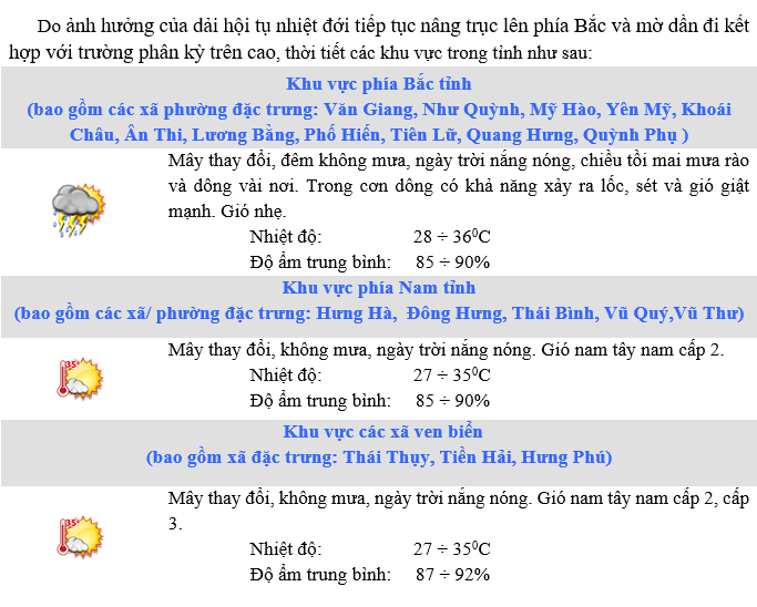 DỰ BÁO THỜI TIẾT KHU VỰC HƯNG YÊN ĐÊM 07 NGÀY 08/7/2025