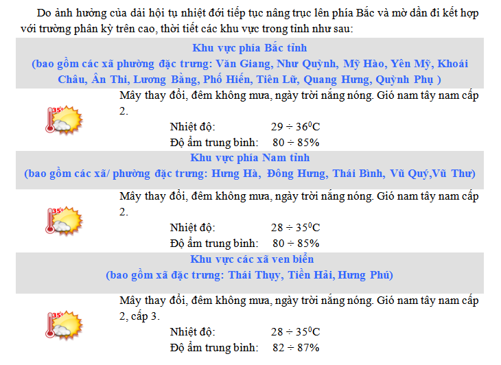 DỰ BÁO THỜI TIẾT KHU VỰC HƯNG YÊN ĐÊM 08 NGÀY 09/7/2025