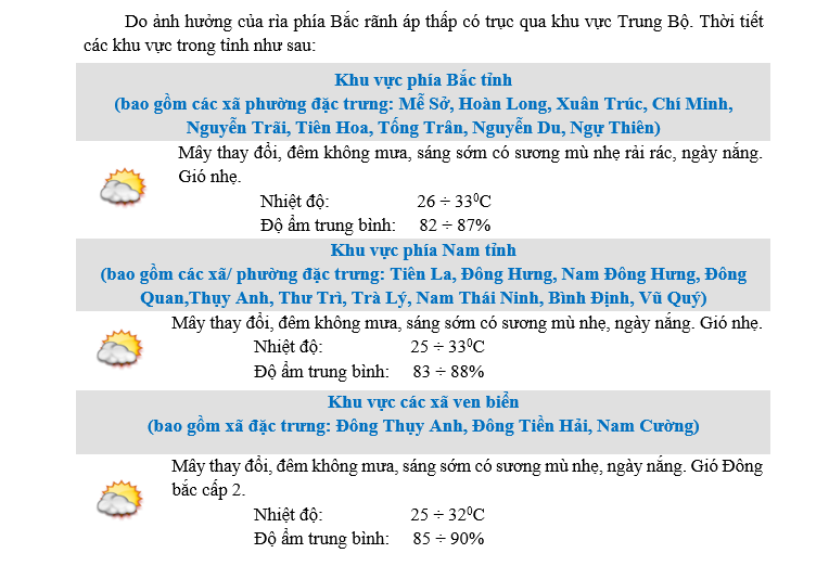 • DỰ BÁO THỜI TIẾT KHU VỰC HƯNG YÊN ĐÊM 30/11 NGÀY 01/12/2025
