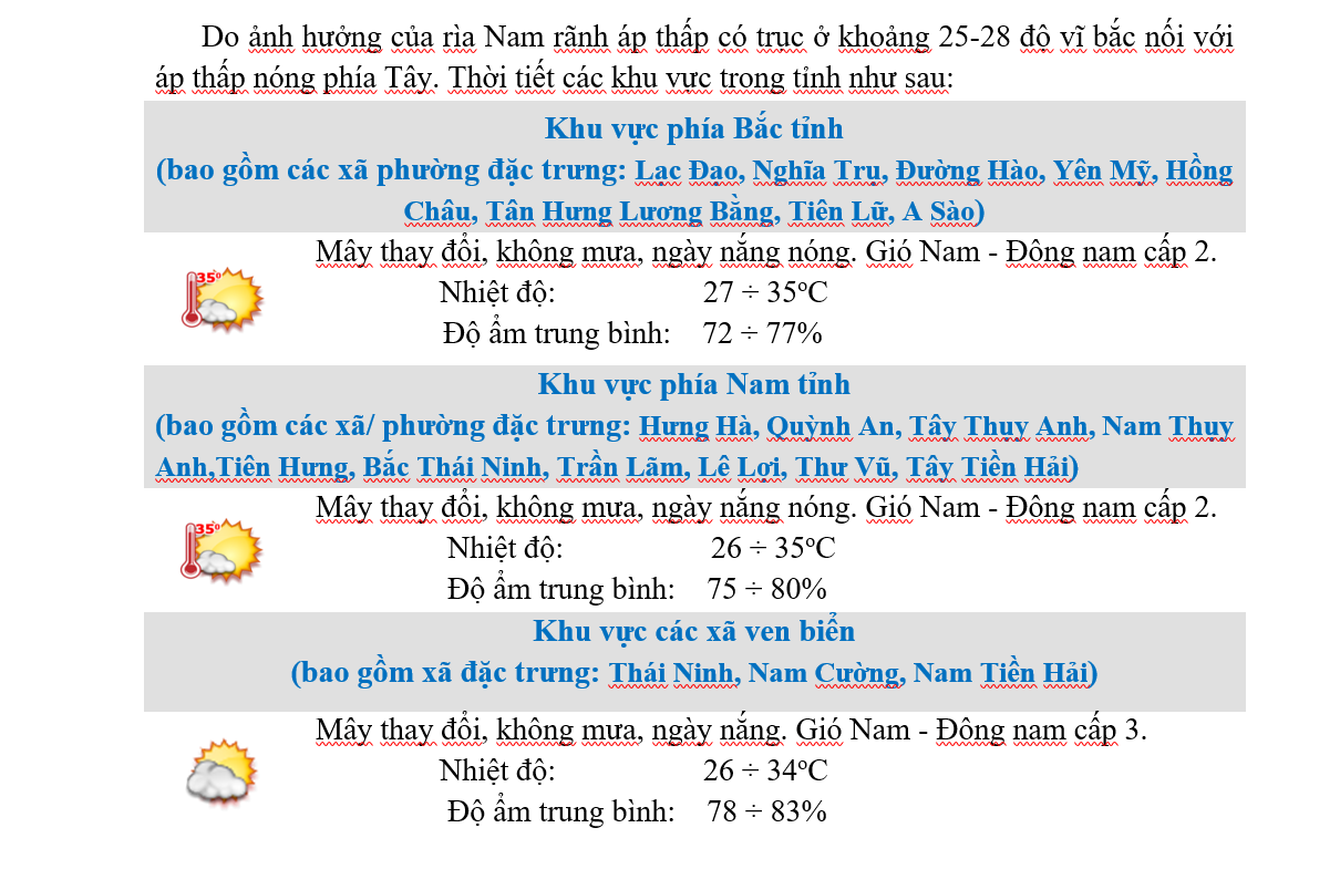 • DỰ BÁO THỜI TIẾT KHU VỰC HƯNG YÊN ĐÊM 08 NGÀY 09/4/2026