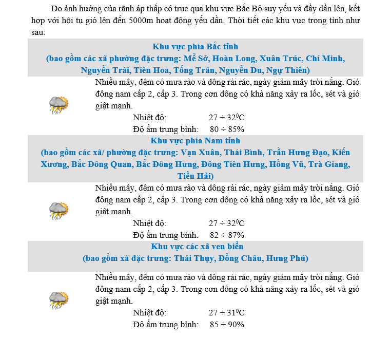 DỰ BÁO THỜI TIẾT KHU VỰC HƯNG YÊN ĐÊM 12 NGÀY 13/9/2025