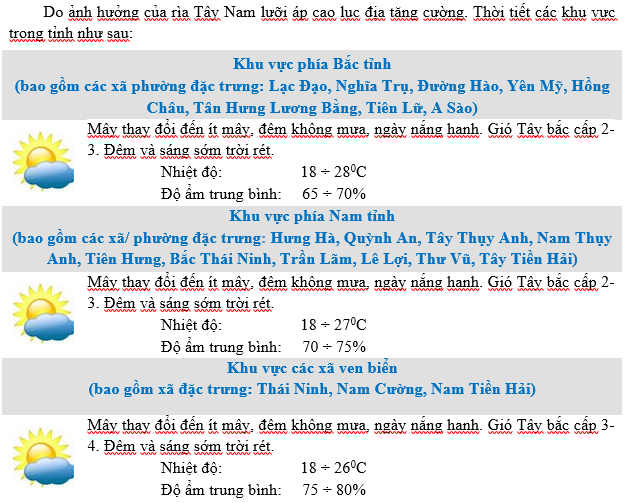• DỰ BÁO THỜI TIẾT KHU VỰC HƯNG YÊN ĐÊM 30/11 NGÀY 01/12/2025