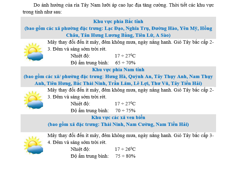 • DỰ BÁO THỜI TIẾT KHU VỰC HƯNG YÊN ĐÊM 02 NGÀY 03/12/2025